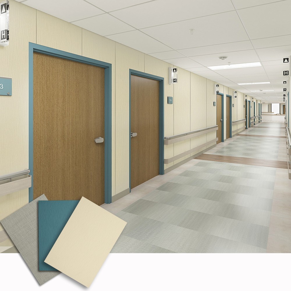● Zones à fort trafic et à fort impact : salle de nettoyage, couloirs, salles de classe, chambres de patients/résidents, salles de conférence, zones techniques, colonnes. Avantages : options de conception infinies permettant une coordination au sein de tout projet de design intérieur. Durable.